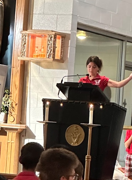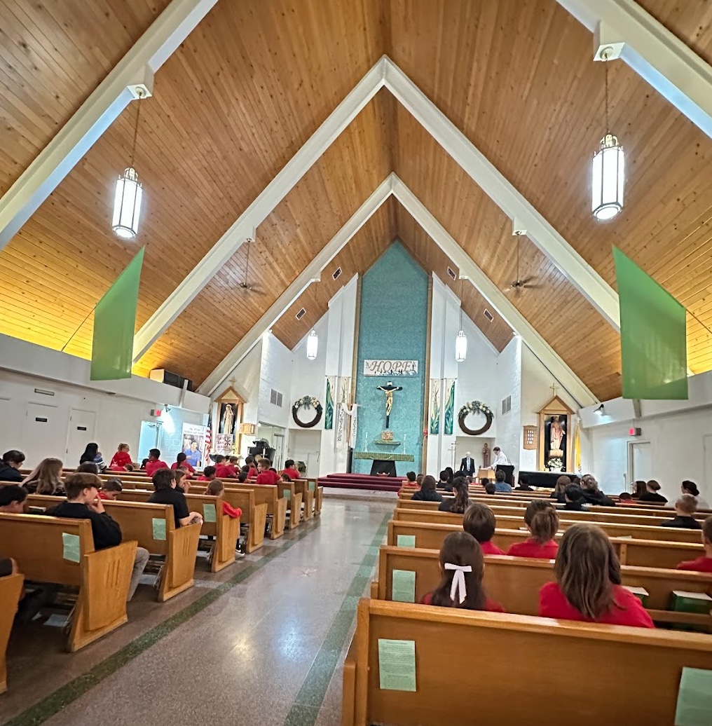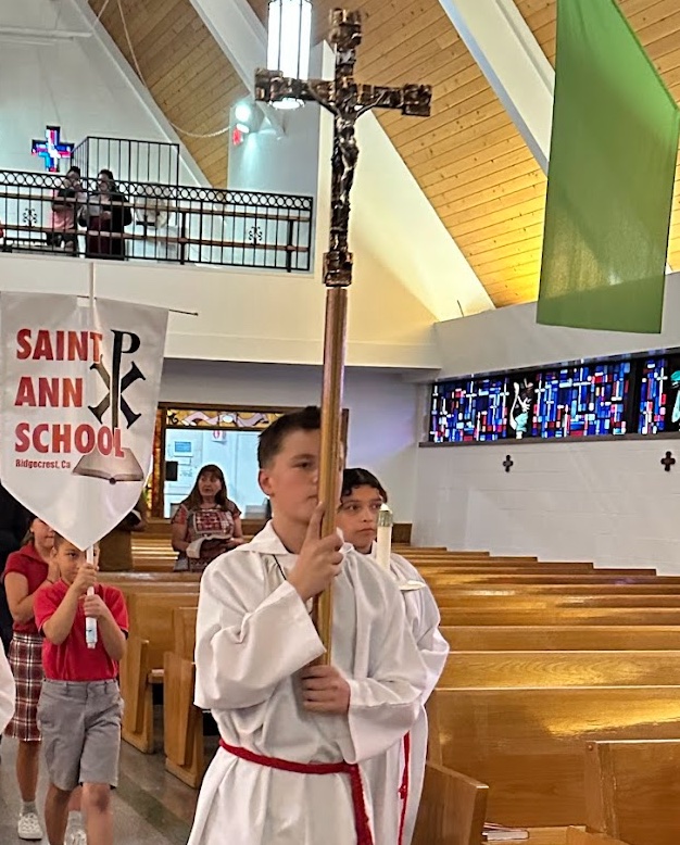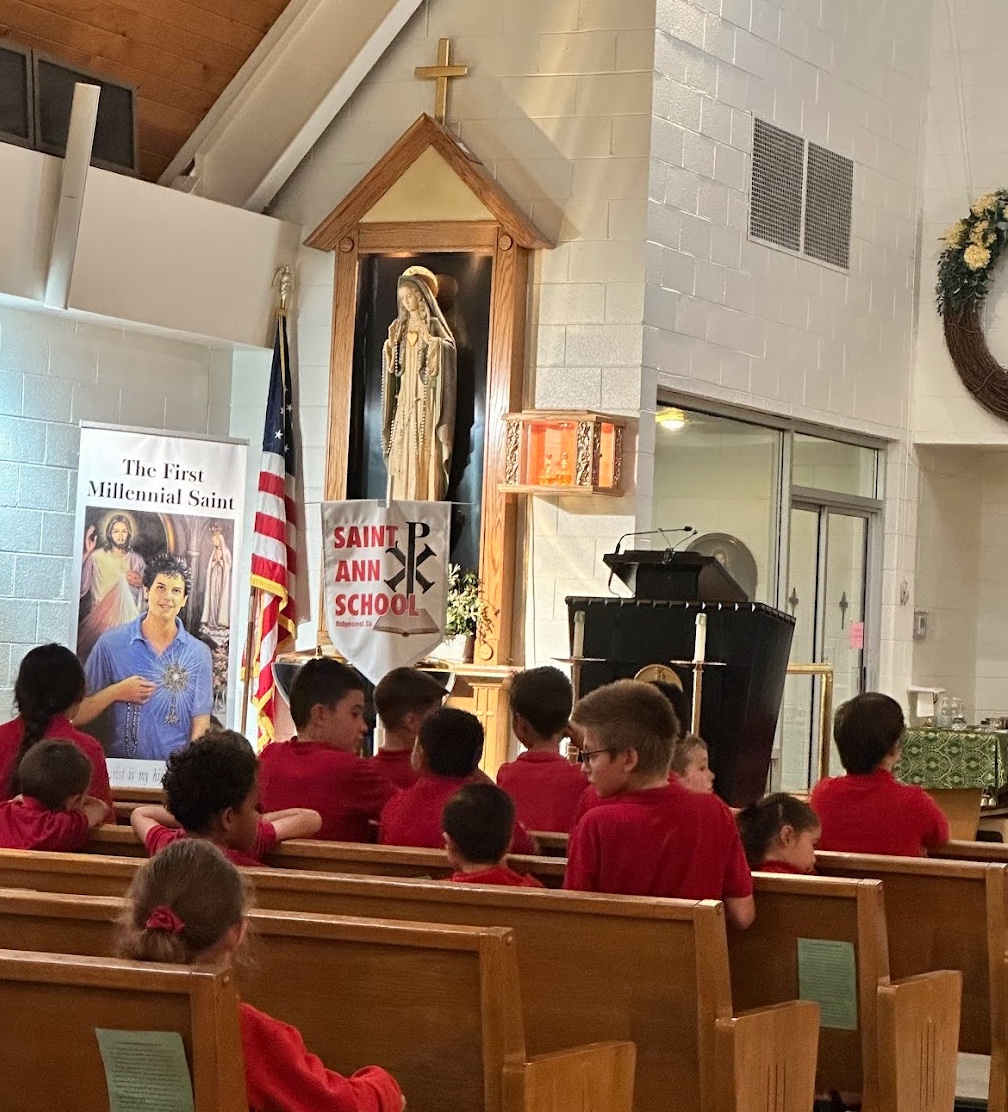 Every Friday morning the students and staff of Saint Ann School celebrate Mass with Father Santiago, the parish Pastor. Mass starts at 8:15. Each week one of the school classes, except Kindergarten, leads the Mass, starting with 8th Grade in the beginning of the school year. Students act as ushers, carry the school banner, and most importantly, do all of the readings. This repeated act of public reading at a microphone gives students the confidence to speak in public throughout their lives.