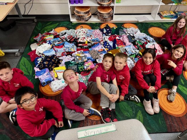 Second Grade’s service project collects new sets of pajamas from families, friends & parishioners. The pajamas are then donated before Christmas to a Foster Care Agency, the Woman’s Shelter or similar assistance organization.