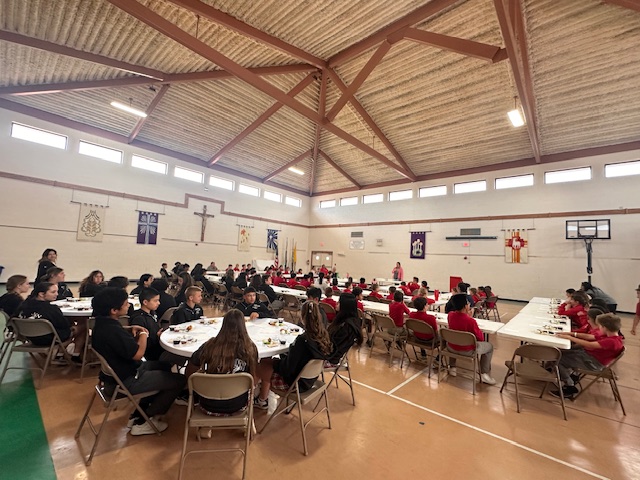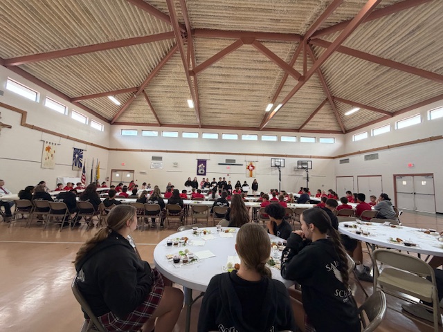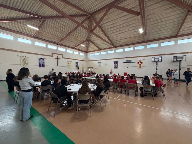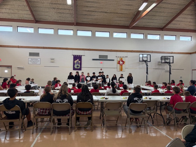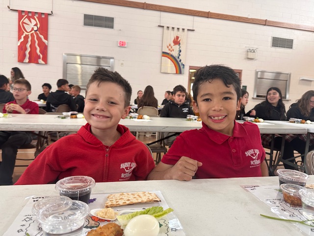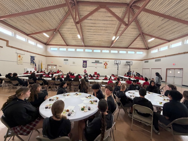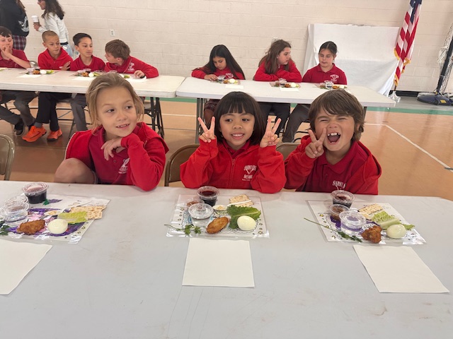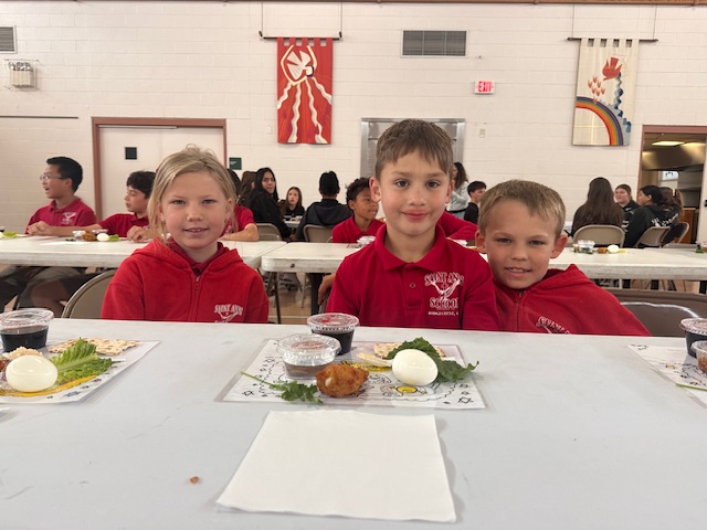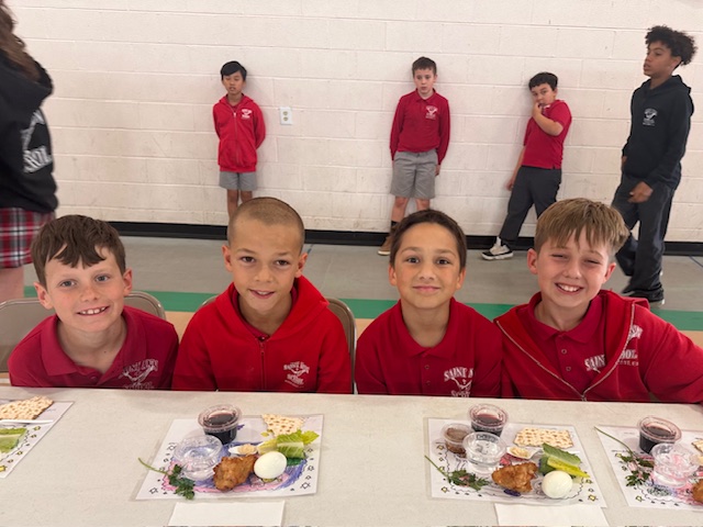 On Holy Thursday before Easter, the Seder Meal provides Catholics the opportunity to reflect on how the Lord delivered the Israelites out of Egypt. Traditionally, the Seder Meal consists of Lamb (Chicken Nuggets), Haroset (Apples w/ Raisins), Unleavened Bread, Parsley (Lettuce), Boiled Eggs, Bitter Herbs (Horseradish), Wine (Grape Juice) & Salt Water. Students were eager to learn about the tradition, but not excited to eat some of the foods!